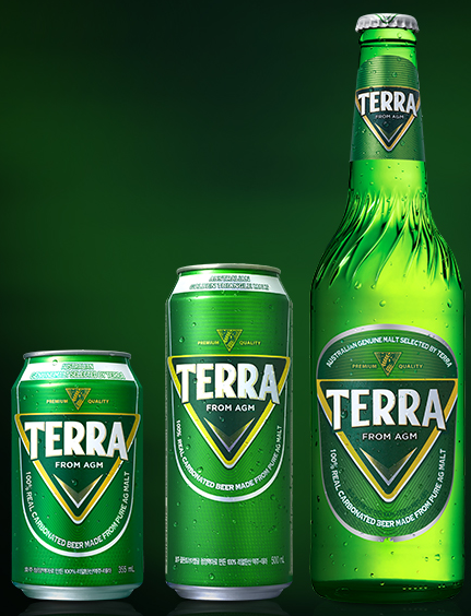 라틴어로 흙, 대지, 지구를 뜻하는 테라는 시대적 요구를 반영하기 위해 전세계 공기질 부문 1위를 차지한 호주의 청정 맥아만을 사용하였고, 발표 공정에서 자연 발생하는 리얼탄산만을 100% 담았다. 그래서 테라는 가슴을 쓸어내릴 듯한 극도의 청량감과 깔끔한 끝맛 그리고 조밀한 거품이 우수한 대중 라거이다. 패키지 역시 기존 레귤러 맥주와는 확연히 다르게 청정라거 컨셉을 가장 잘 표현하는 '그린'을 메인 컬러로 선정하여 모든 패키지에 적용하였고 특히 병 어깨 부분에 토네이도 모양의 양음각 패턴을 적용하여 휘몰아치는 라거의 청량감을 시각화 하였다. 이에 출시 101일 만에 1억병 판매 돌파, 160일 만에 2억병 판매 돌파라는 놀라운 기록을 세우며 소비자들로부터 열띤 호응을 얻고 있다.