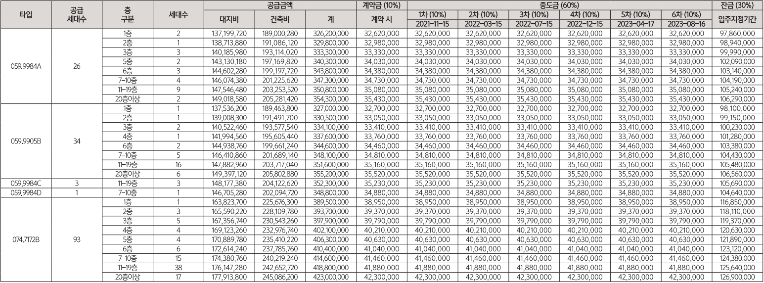59㎡A(26세대) 3억 2,620만 원 ~ 3억 5,430만 원