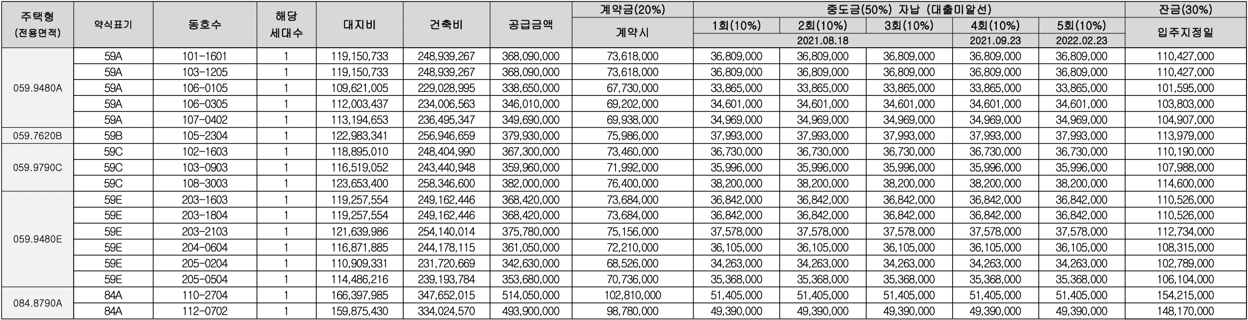 최초분양가 3.38억 ~ 5.14억원으로 그대로 나오네요