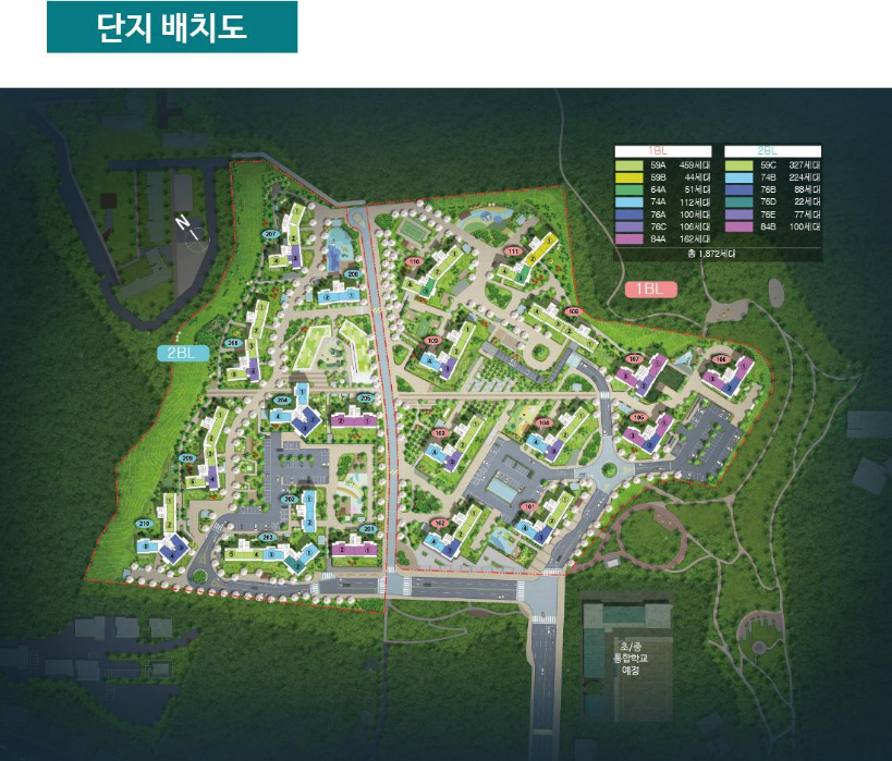 공급규모 : 아파트 지하 6층, 지상 28층, 주 21개 동, 총 1,872세대 중 일반공급 45세대