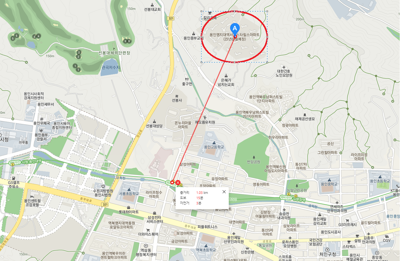- 용인시청, 이마트, 하나로마트, 롯데시네마, CGV, 세브란스병원, 문예회관 등 다양한 생활 인프라
