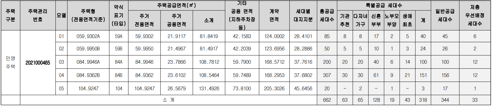 [특별공급 318세대(일반[기관추천] 특별공급 63세대, 다자녀가구 특별공급 65세대, 신혼부부 특별공급 128세대, 노부모부양 특별공급 19세대, 생애최초 43세대 포함)]