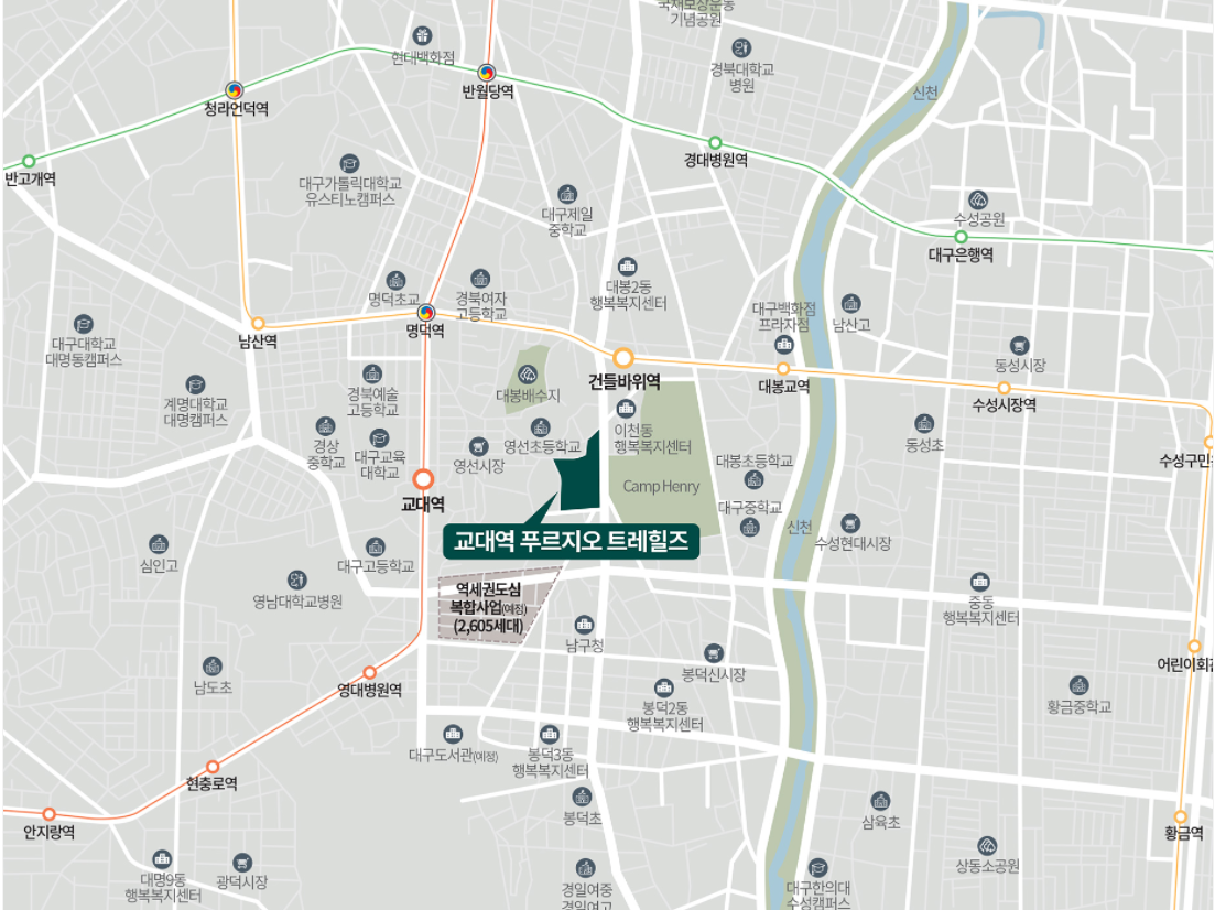 - 앞산공원, 신천둔치 등 자연을 가까이 누리는 힐링 주거환경