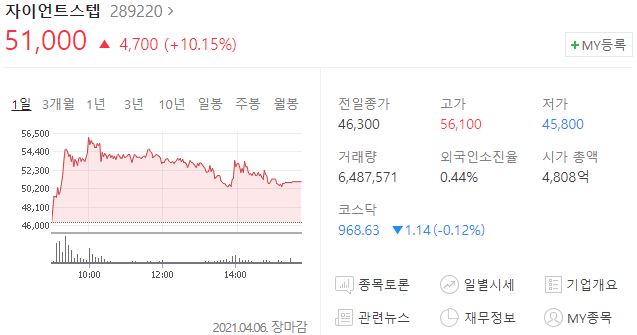 자이언트스텝(289220) 주가 51,000원(+10.15%)