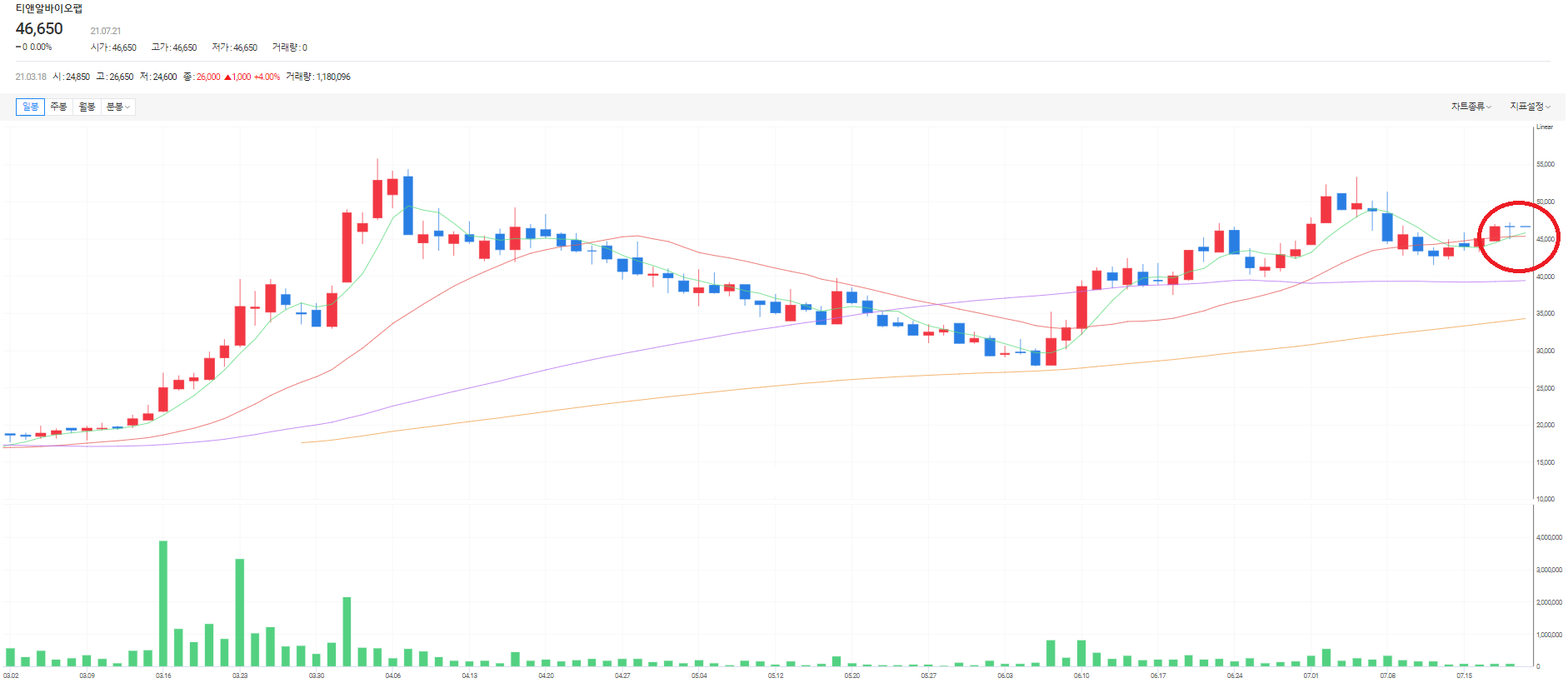 20일선을 계속 지지해줄 수 있는지를 체크해 봐야겠다.