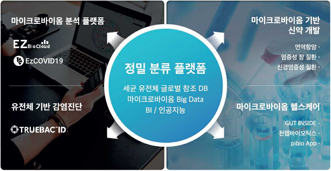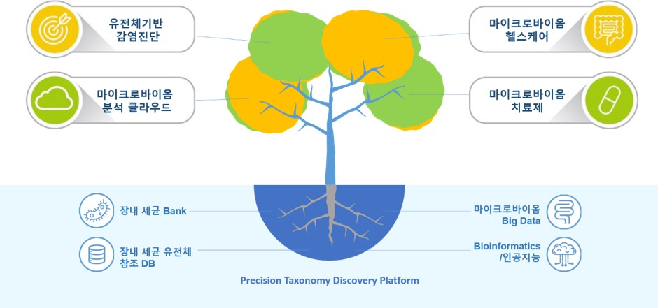 천랩의 정밀 분류 플랫폼(Precision Taxonomy Platform은 미생물의 유전체 정보를 활용, 미생물이 서로 다른 특성을 가질 수 있는 종(Species) 또는 균주(Strain)에 가까운 수준에서 매우 정확하게 동정 및 분류할 수 있는 차세대 분류 체계를 접목시킨 플랫폼이다. 분류학적 해상도가 낮은 기존의 방법으로 발견하지 못한 대다수 세균을 동정 및 분류하여 정밀한 미생물 연구를 가능하게 할 뿐 아니라 진단용 바이오마커 또는 미생물 신약 후보물질 발굴 등 마이크로바이옴 산업 전반에 활용될 수 있다.