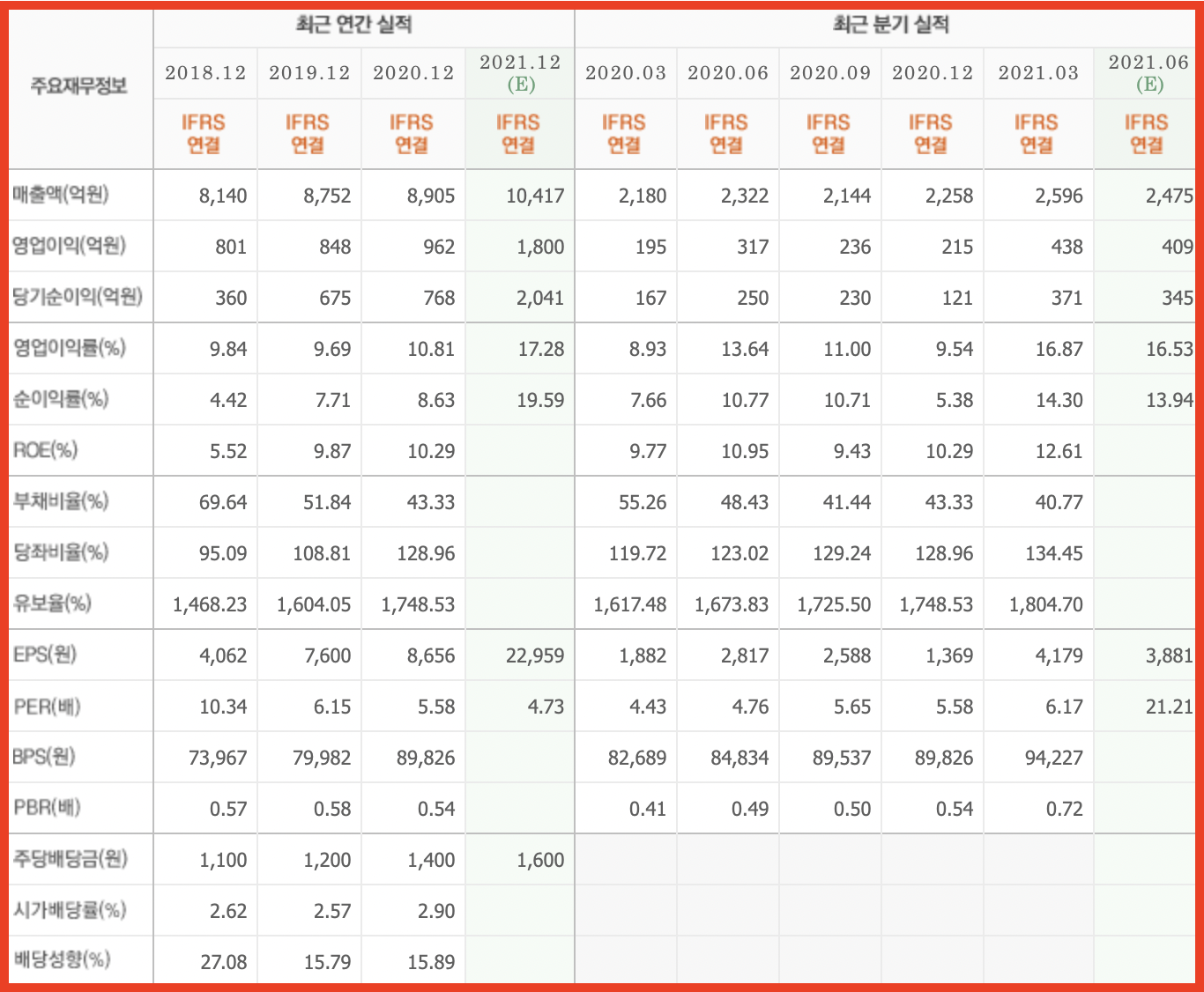 4. 21년 2분기 영업이익 : 554억