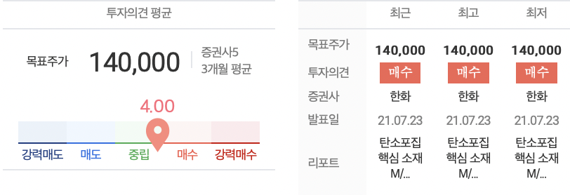 - 한화투자증권 목표주가 140,000원