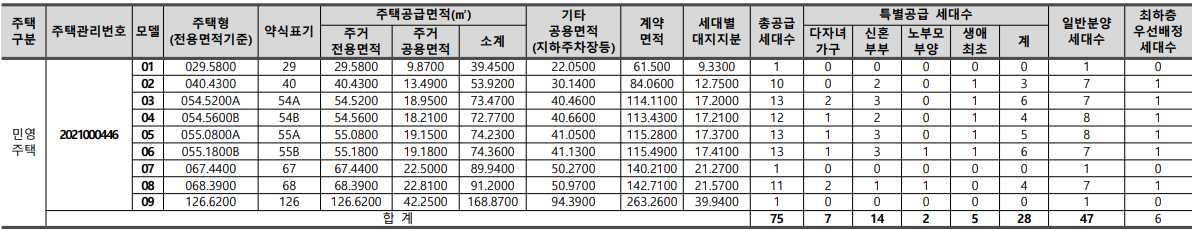 [특별공급 28세대(다자녀가구 7세대, 신혼부부 14세대, 노부모부양 2세대, 생애최초 5세대 포함)]