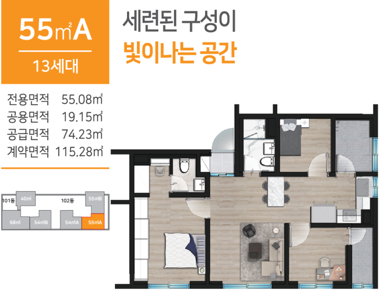 55㎥A(13세대) 6억 5,780만 원 ~ 6억 9,820만 원