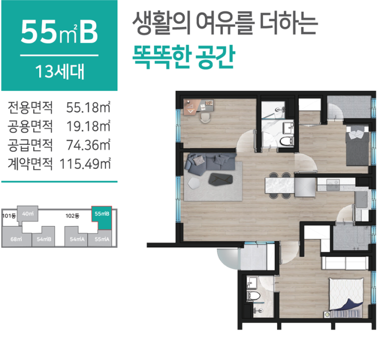 55㎥B(13세대) 6억 6,160만 원 ~ 7억 230만 원