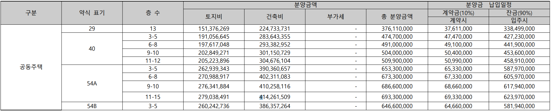 54㎥B(12세대) 6억 4,660만 원 ~ 6억 8,610만 원