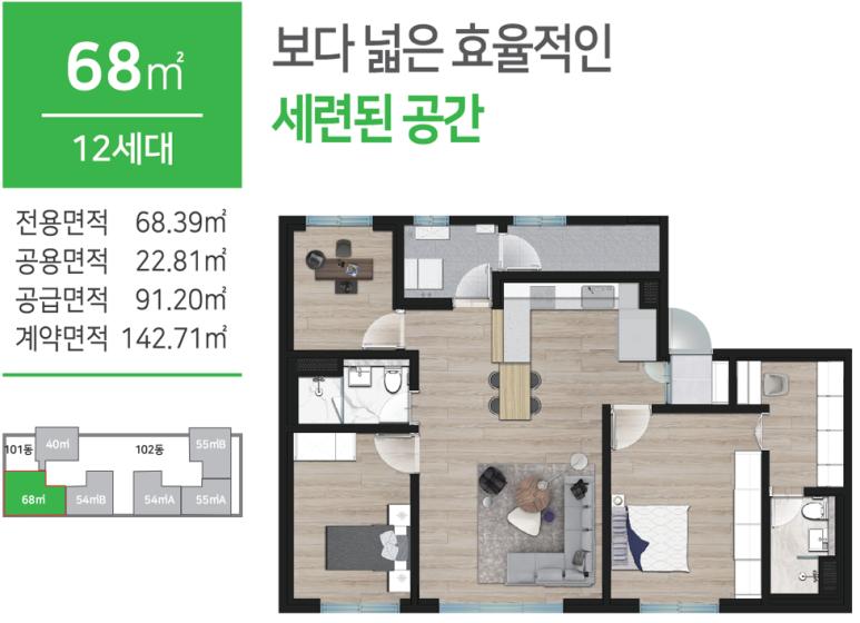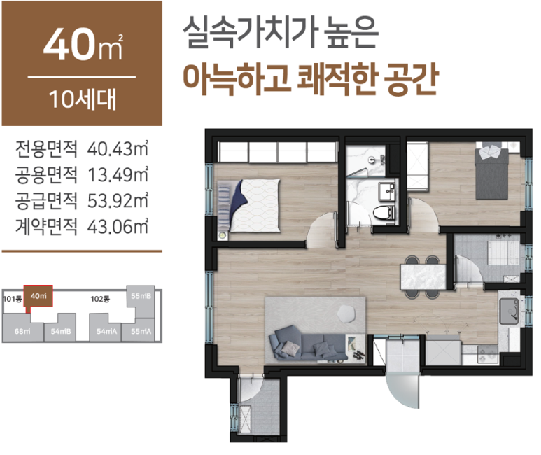 분양타입 : 29㎡ / 40㎡ / 54㎡A / 54㎡B / 55㎡A / 55㎡B / 67㎡ / 68㎡ / 126㎡