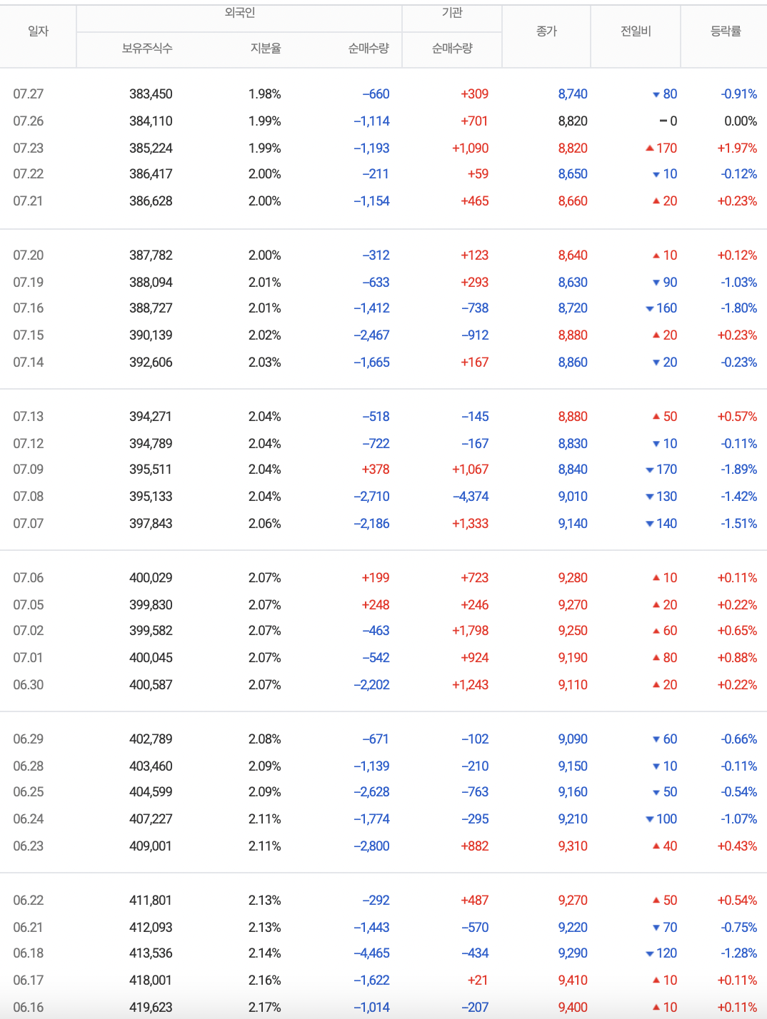 최근 계단식으로 꾸준히 하락중이였는데 이 계약을 계기로 추세전환을 할 수 있을지 지켜봐야겠다.