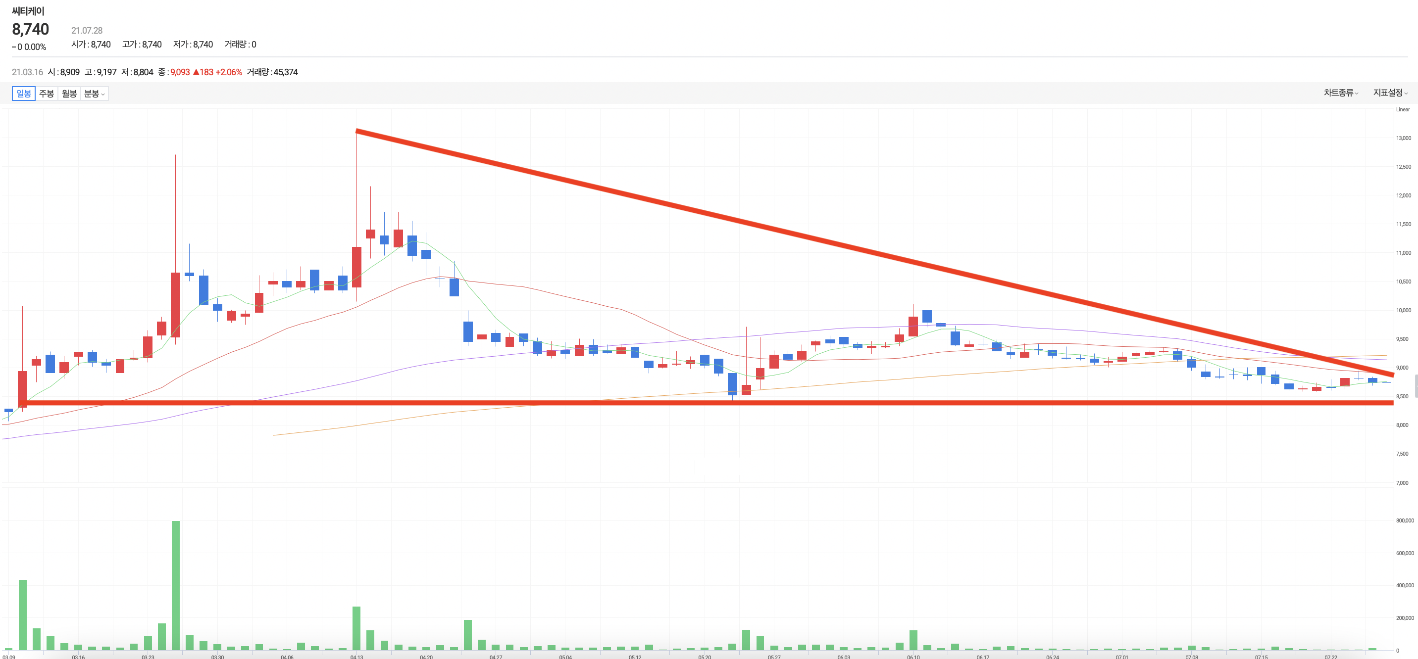 최근 계단식으로 꾸준히 하락중이였는데 이 계약을 계기로 추세전환을 할 수 있을지 지켜봐야겠다.