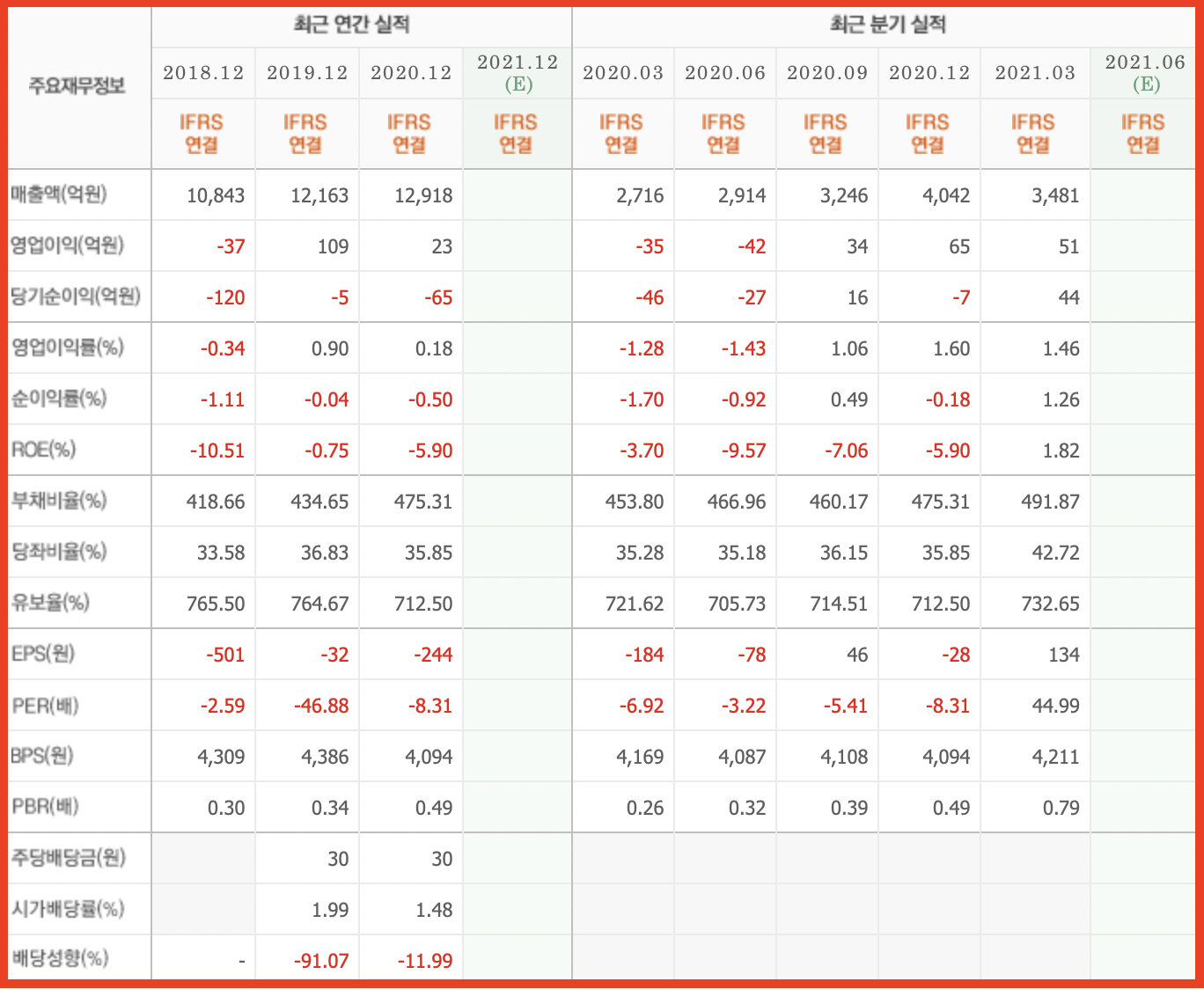 3. 21년 1분기 매출액 : 3,481억