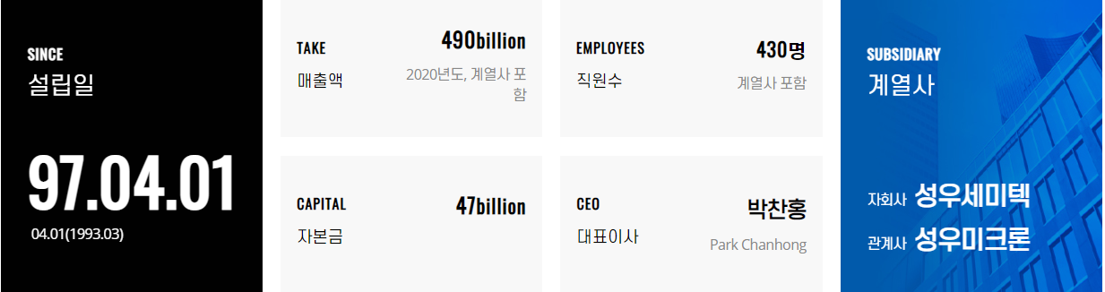 성우테크론 1997년 4월 설립되어 반도체 검사장비의 제조 및 반도체 부품 제조를 주업으로 하고 있다.