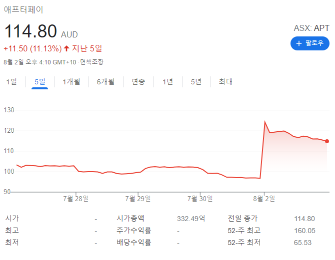 이 때문에 애프터페(APT)이 주가가 한때 23% 이상 급등하기도 했다.
