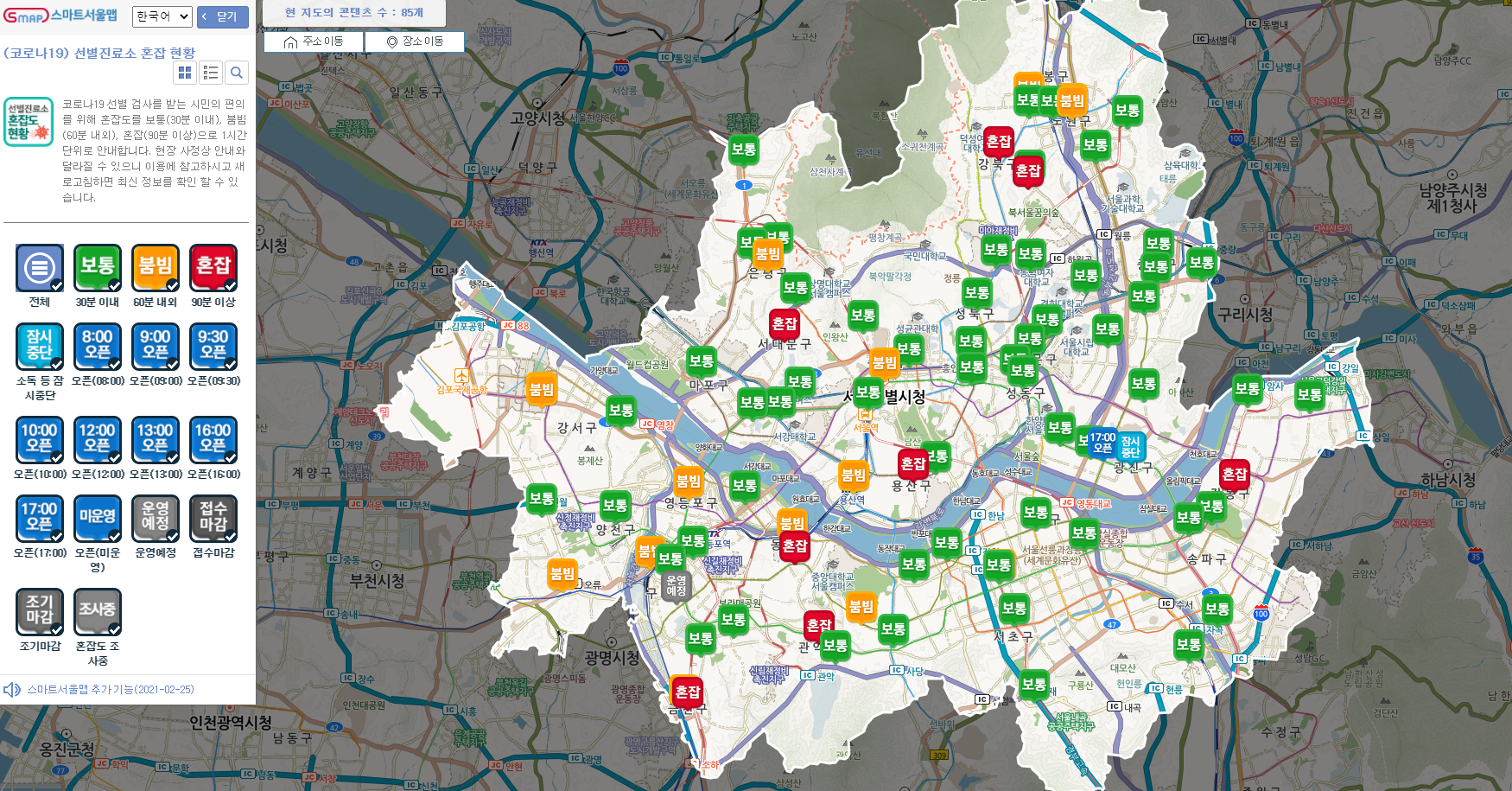 참고로 아래 사이트에서 선별진료소/임시선별검사소의 혼잡도를 확인 할 수 있습니다.