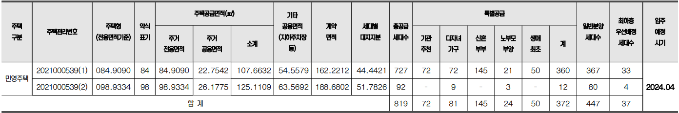 [일반(기관추천)특별공급 72세대, 다자녀가구 특별공급 81세대, 신혼부부 특별공급 145세대, 노부모부양 특별공급 24세대, 생애최초 50세대] 포함