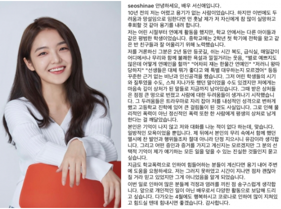 수진은 학폭 문제 중 배우 서신애와도 논란이 있었습니다.