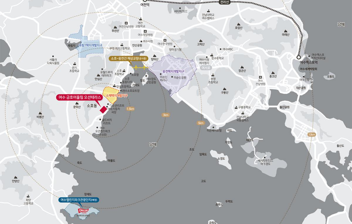 - 3천여세대 소제택지 개발지구 및 여수 챌린지파크 관광단지 조성 예정