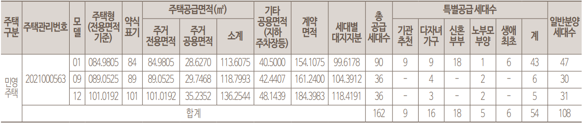 공급규모 : 공동주택 지하 2층, 지상 4층 10개 동 총 162세대