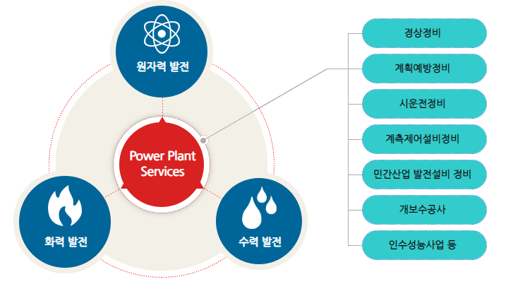 1984년 4월 한국전력공사의 전액 출자로 설립된 발전설비 정비 전문회사로 전력설비정비(화력, 원자력/양수, 송변전, 대외, 해외)의 관련된 기술개발 및 신재생에너지 사업을 수행하고 있다.
