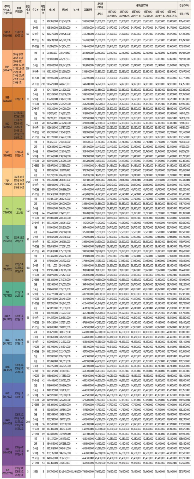 분양타입 : 59㎡ / 72㎡ / 84㎡ / 105㎡