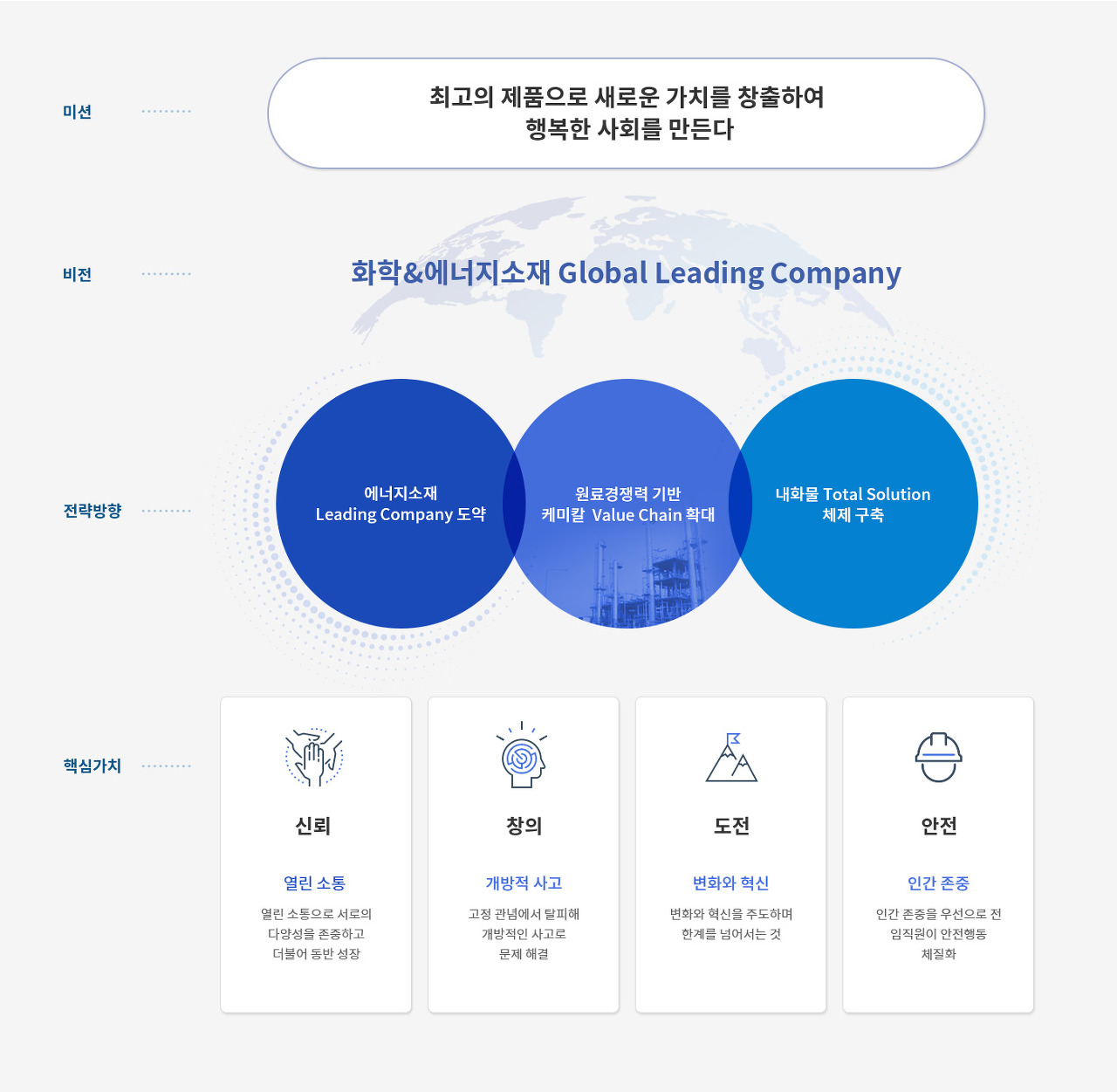 산업 설비의 필수 소재인 내화물과 고품위 생석회를 공급함으로써 철강을 비롯한 산업의 근간을 만들어 내고 있다.