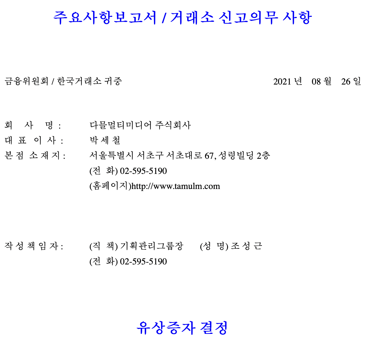 다믈멀티미디어 주가가 시간외 매매에서 상한가를 기록하였다. 무슨 이유로 급등하였을까?