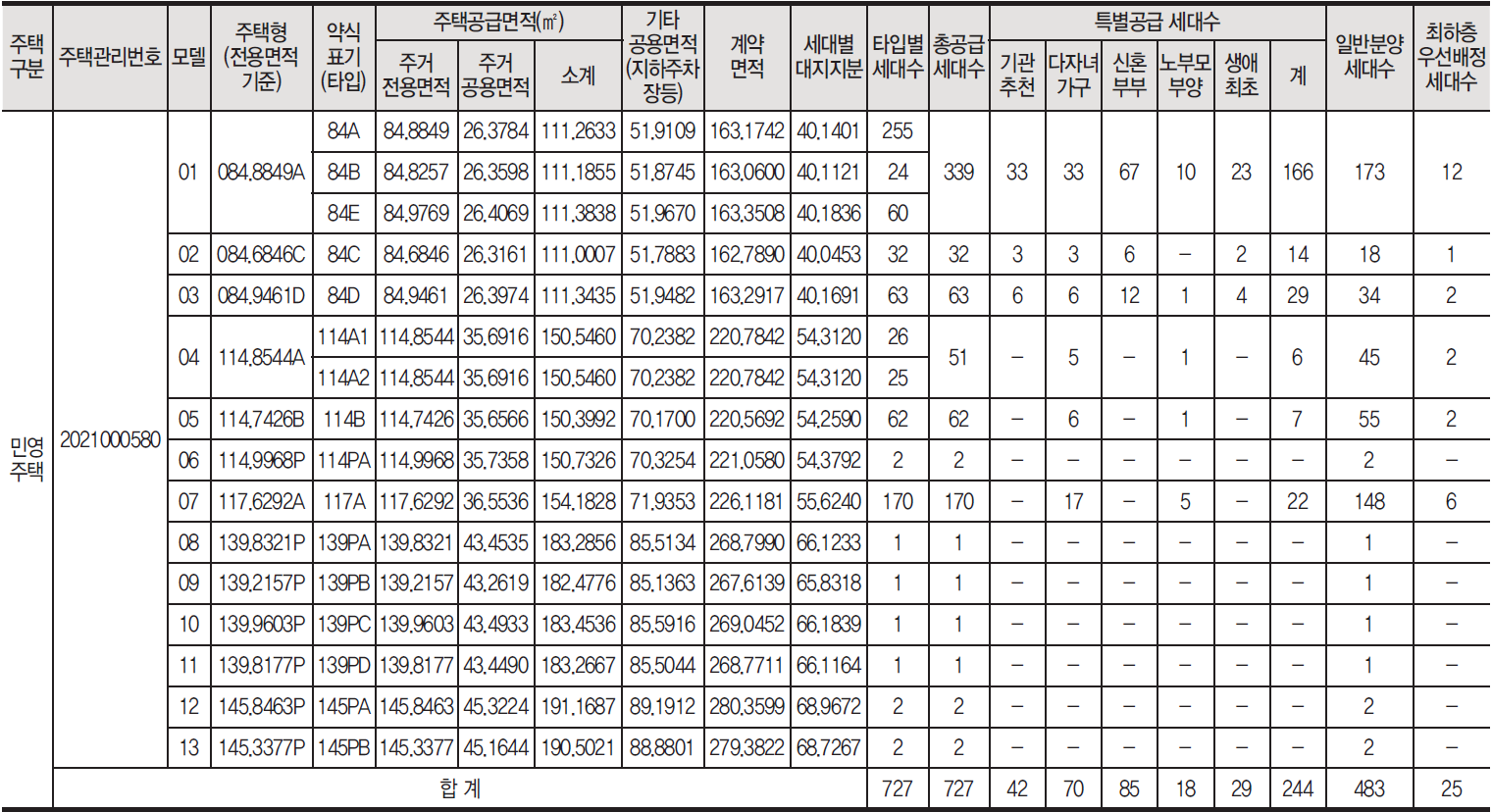 [특별공급 244세대(일반[기관추천] 42세대, 다자녀가구 70세대, 신혼부부 85세대, 노부모부양 18세대, 생애최초 29세대 포함)] 및 부대복리시설