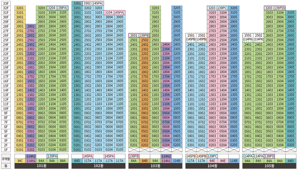 분양타입 : 84㎡ / 114㎡ / 117㎡ / 139㎡ / 145㎡