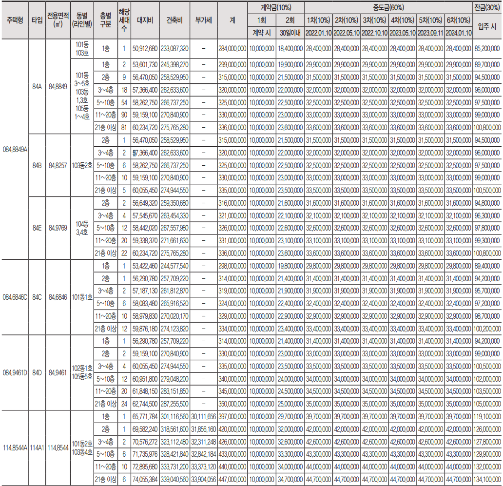 84㎡B 3억 1,500만 원 ~ 3억 3,500만 원