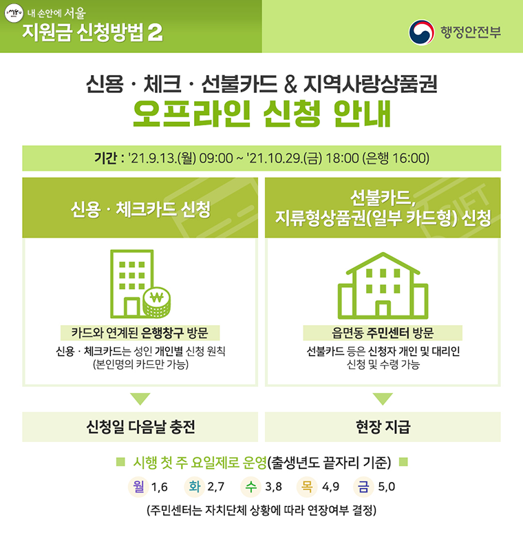 (오프라인) 읍·면·동 주민센터, 카드와 연계된 은행창구 등