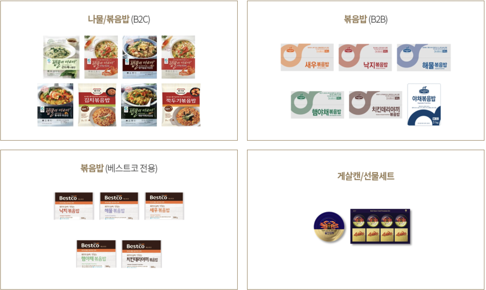 울진군과 함께 설립한 붉은대게 가공식품 공장으로 R&D, 마케팅, 영업 등 최고의 역량과 기술을 투입해 통조림, 냉동 볶음밥 등을 직접 가공, 생산한다. 지역 경제 활성화는 물론 새로운 성장 동력으로 대게 브랜드를 공고히 해 나가고 있다.