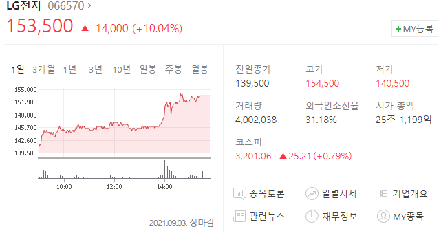 (서울=연합뉴스) 박진형 기자 = LG그룹과 애플의 자동차 관련 협력설이 부각되면서 LG전자[066570] 등 관련 종목이 3일 급등했다.