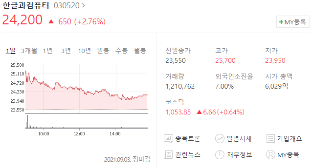 한글과컴퓨터 주가 24,200원(+2.76%)