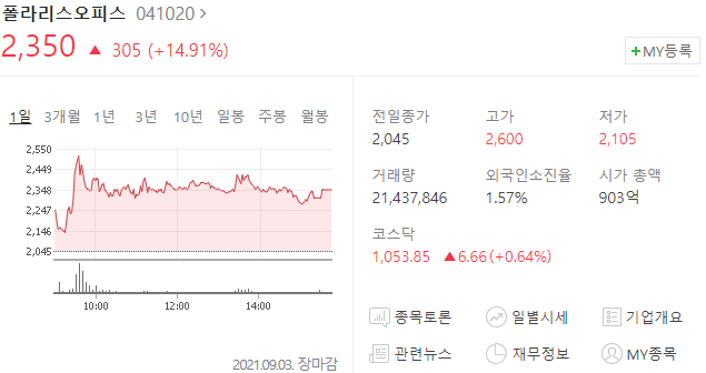 폴라리스오피스 상반기 흑자전환에 성공 및 흑자기조 앞으로도 이어질 전망에 강세