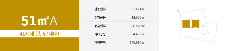 51A(41세대) 6억 8900만 원 ~ 7억 4630만 원