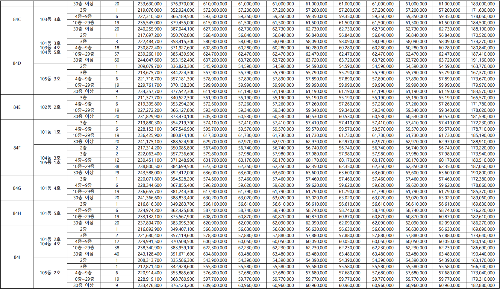 84㎡E(46세대) 5억 5190만 원 ~ 6억 530만 원