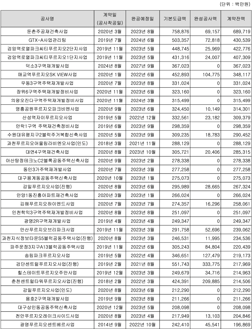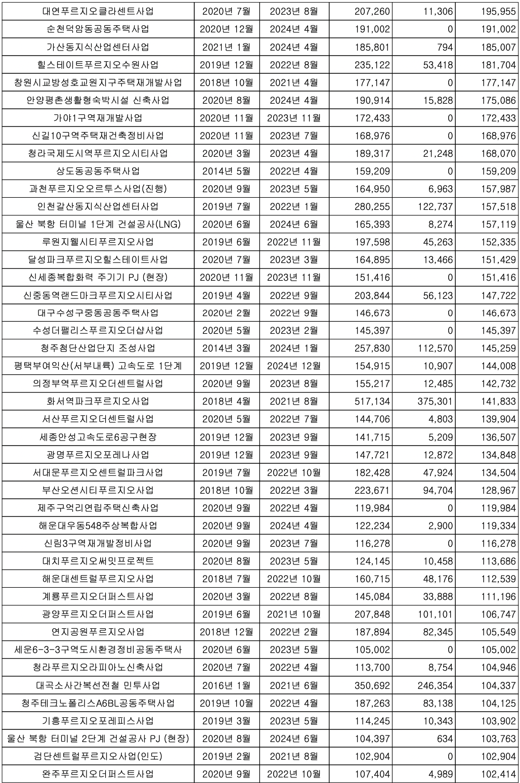 (연결종속법인 및 계약잔액 500억 미만인 프로젝트는 기타항목에 포함)