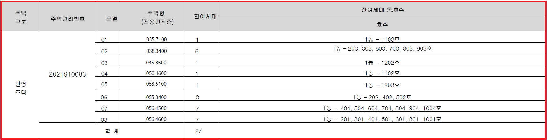 그럼에도 불구하고.. 여러가지 사유로 절반이 넘는 잔여물량 27세대... 흠..