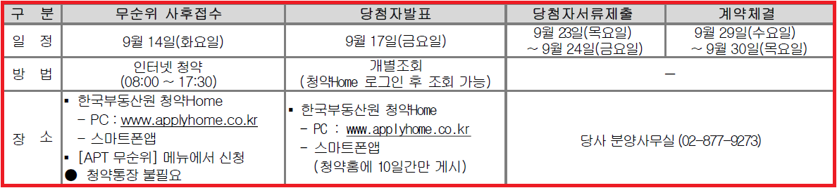 무순위 사후접수일 : 2021년 09월 14일 화요일