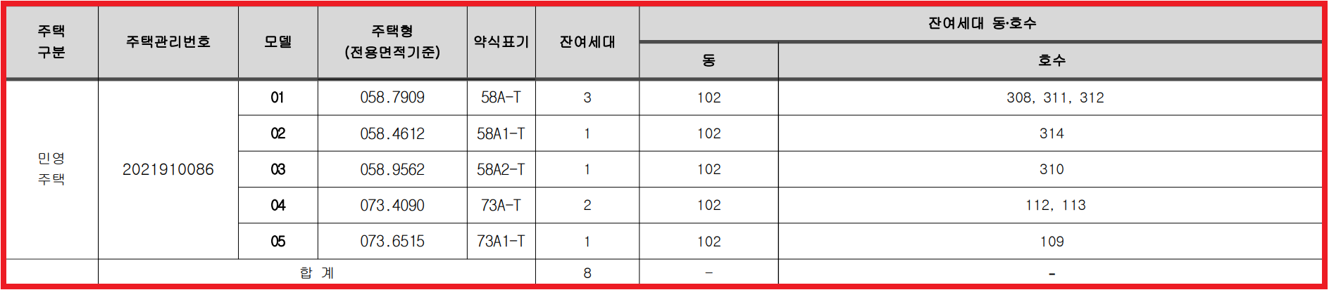 공급규모 : 아파트 지하 3층, 지상 26층 2개동 총 219세대 정당계약 및 예비입주자 계약 이후 잔여물량 8세대