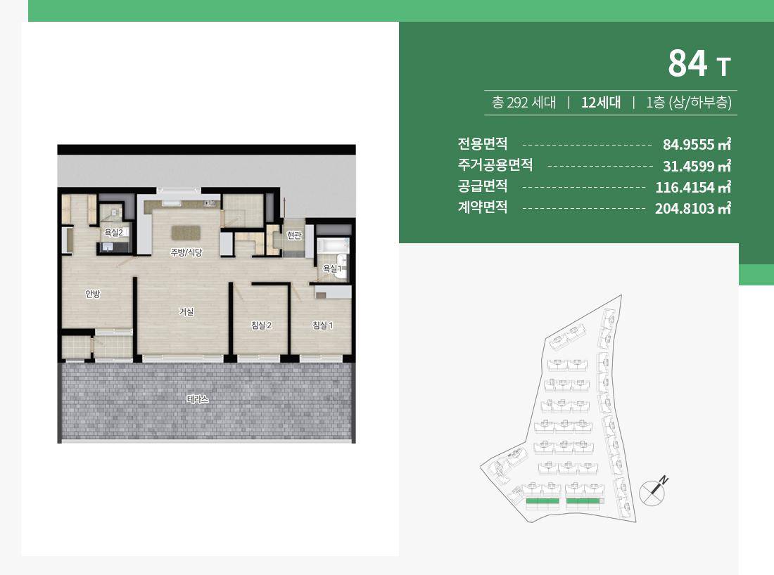 총 292세대의 도시형생활주택으로 꼭대기 층(74B4, 84A4)를 제외한 모든 세대에 테라스가 달려있는 것이 특징이네요.