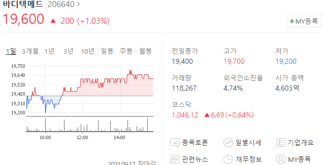 바디텍메드 주가 19,600원(+1.03%)