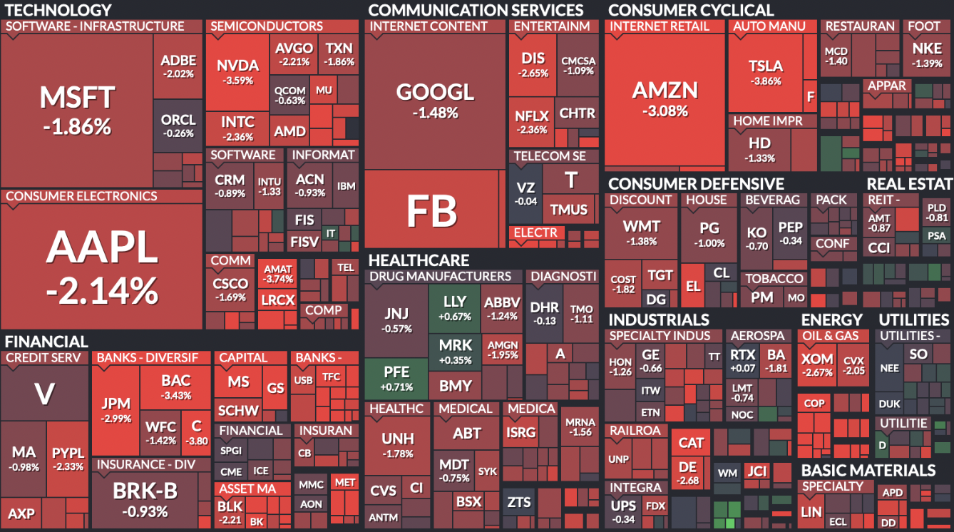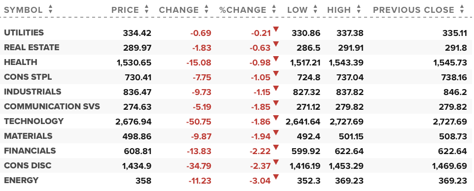 - 유틸리티·부동산·헬스케어·생필품·산업·커뮤니케이션·기술·자재·금융·소비재·에너지 하락