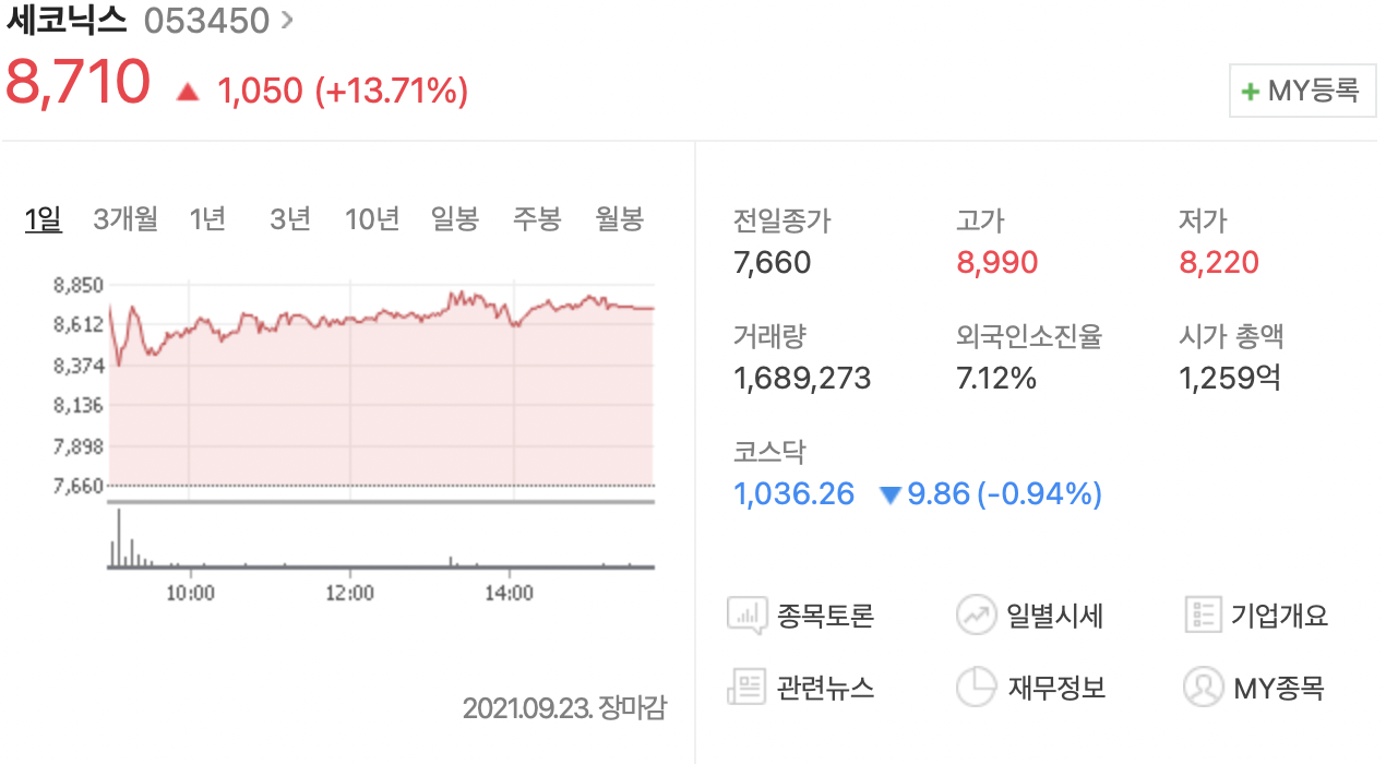 광학렌즈 및 광햑요소 제조업 '세코닉스(SEKONIX)' 국내 카메라 렌즈업체 중 모바일과 자동차에서 선도적인 입지를 확보 중인 동시에 안정적인 성장세가 예상된다는 증권사 분석에 강세