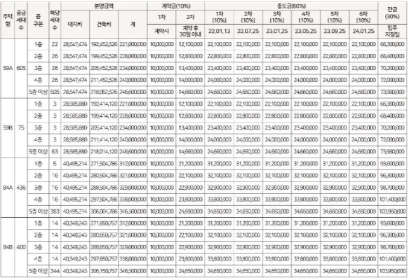 59㎡A(605세대) 2억 2,100만 원 ~ 2억 4,660만 원